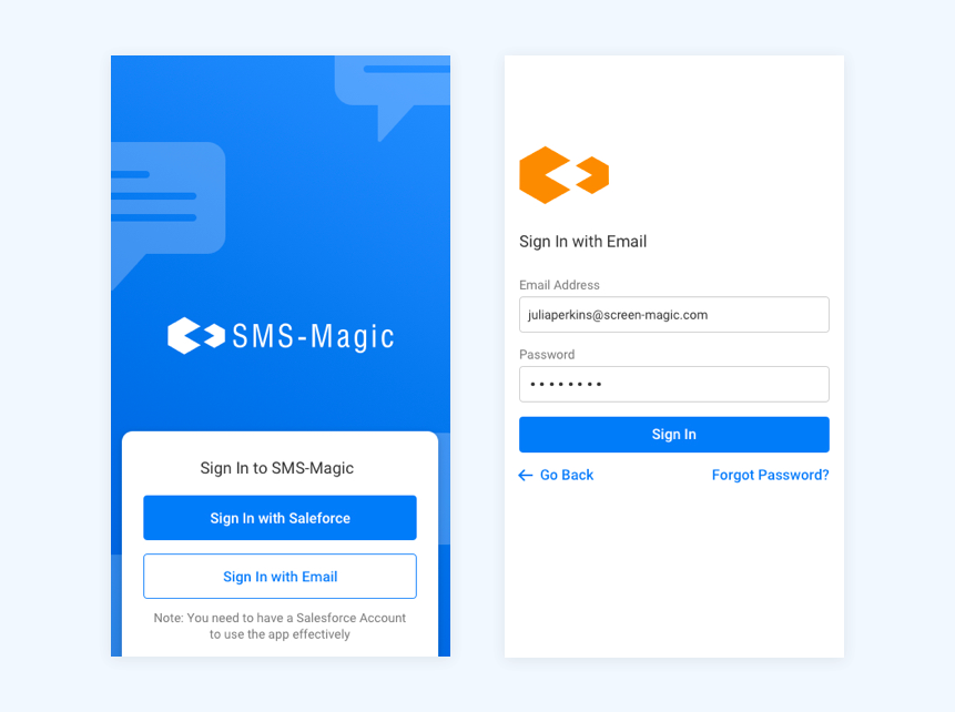 This is another simple way to sign in to the SMS-Magic Converse mobile app. Here you use your email credentials to sign in to the app and start seamless conversations with your customers.