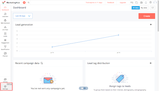 - From the Navigation toolbar of Zoho MarketingHub, select Settings and choose Apps under Integrations.
