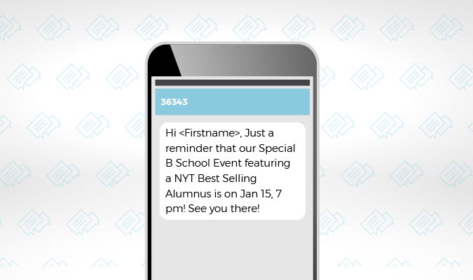 Use text messaging to invite alumni to networking events, special programs at your campus, or continuing education opportunities. Texting makes it so easy to keep your alumni in the loop concerning key news and updates, fun announcements, and more. For example, colleges and text messaging can invite your alumni to a special networking function, then remind them of the date and time.
